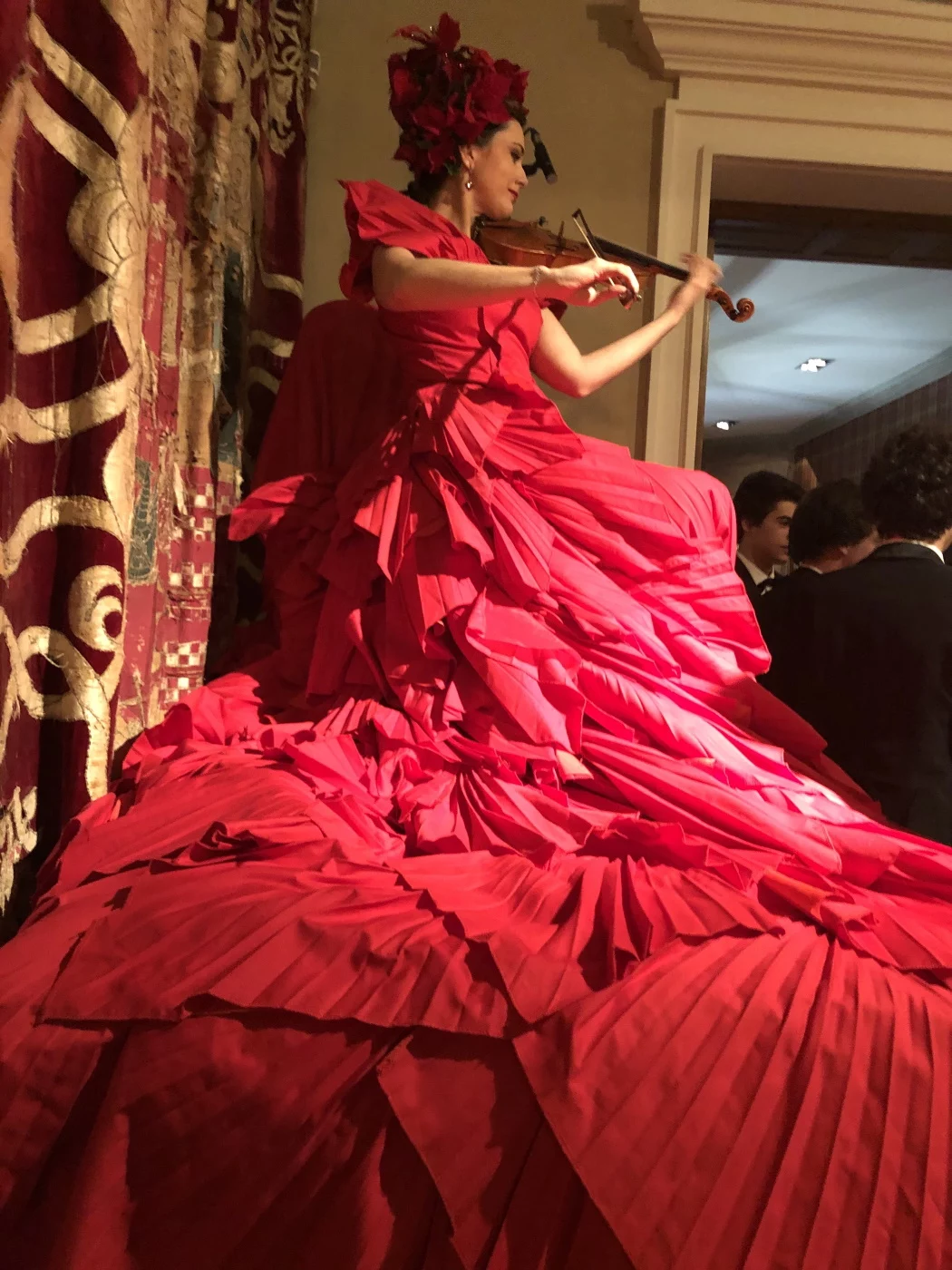 How about a Christmas Diva welcoming you playing Christmas carols on her violin?