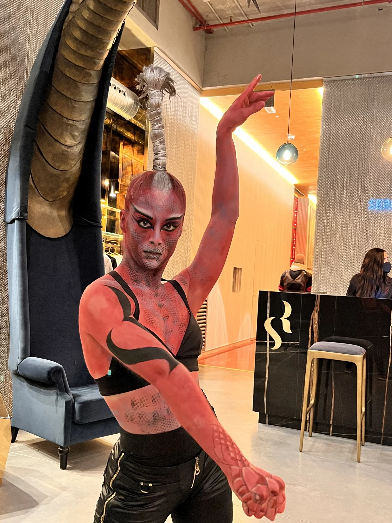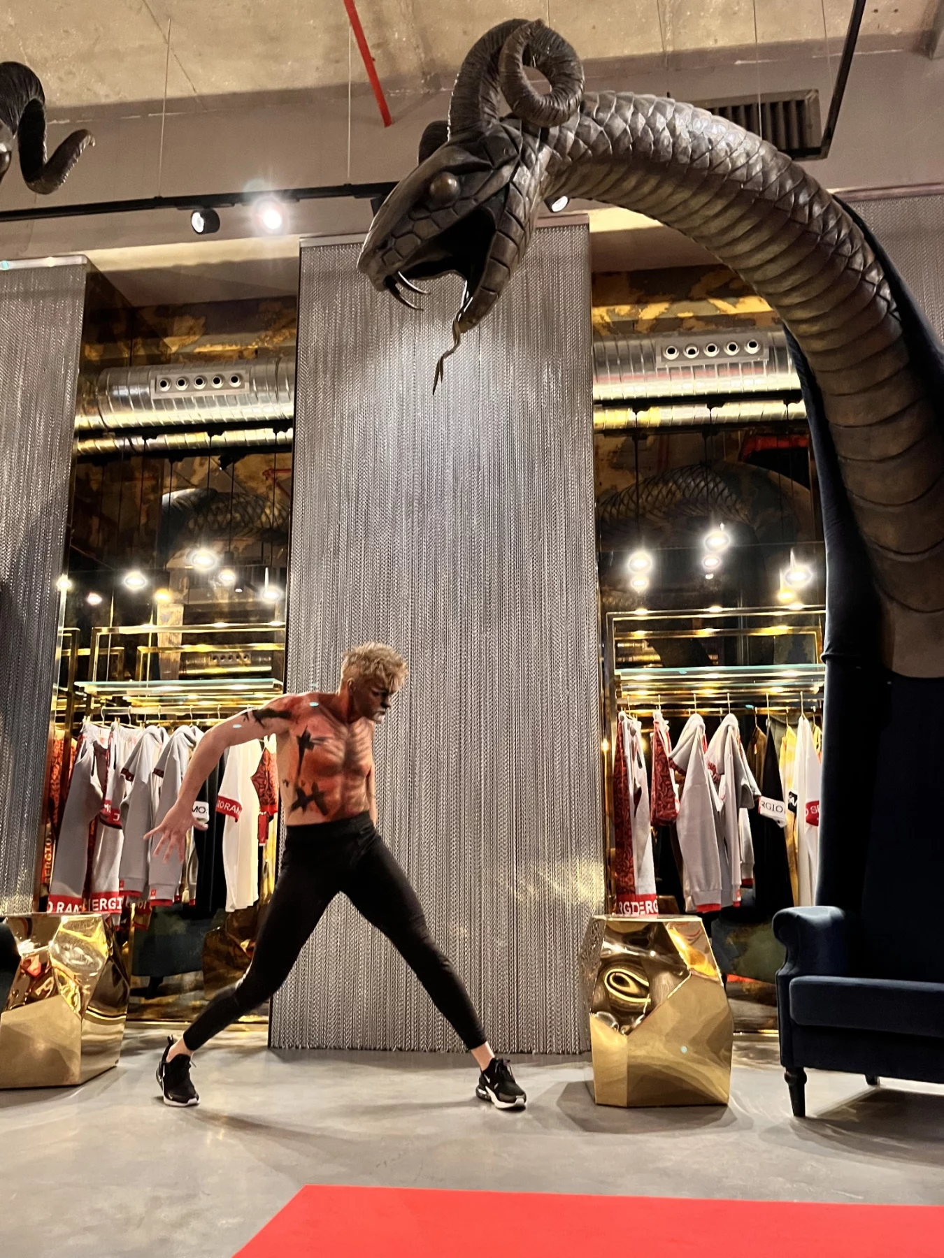 On this occasion, we proposed two dancers made up with bodypainting pretending to be a lion and a snake who interacted with the gym’s customers.