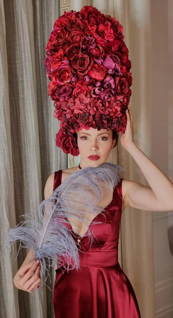 - Actrices-modelo vestuario y tocados en color rojo