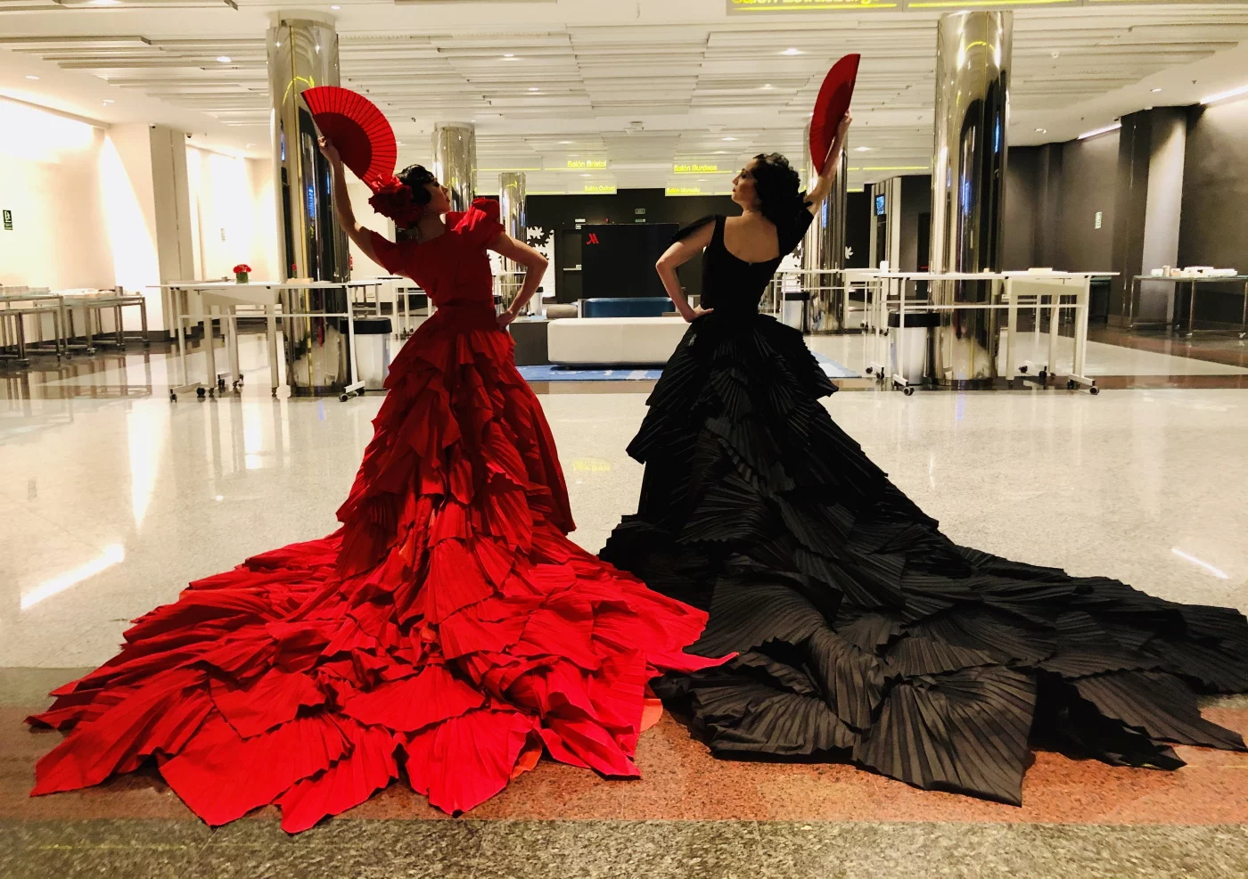 PERSONAJES ELEGANTES CON VESTIDOS DE GRAN MAGNITUD PARA BIENVENIDAS Y EVENTOS. OFRECEN GLAMOUR Y ELEGANCIA AL ESPACIO.